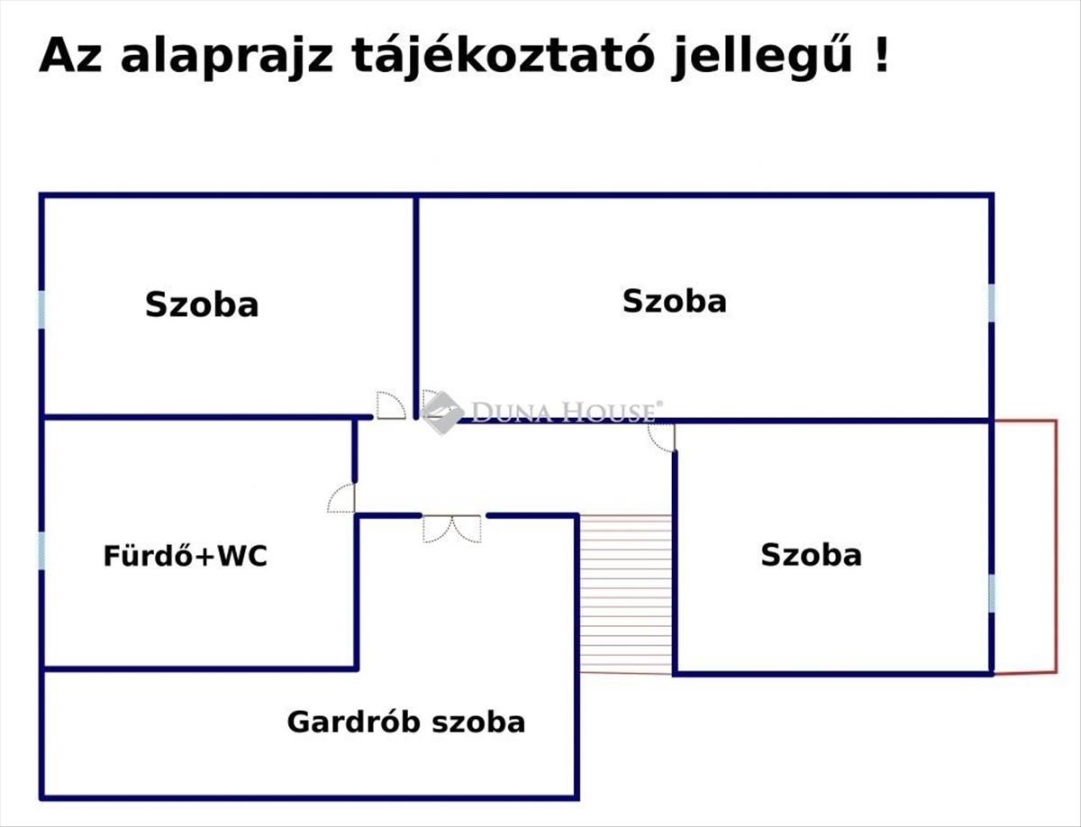Az emeleten található 3 szoba, egy Fürdő +WC-vel és egy gardrób szoba valamint a padlástér!