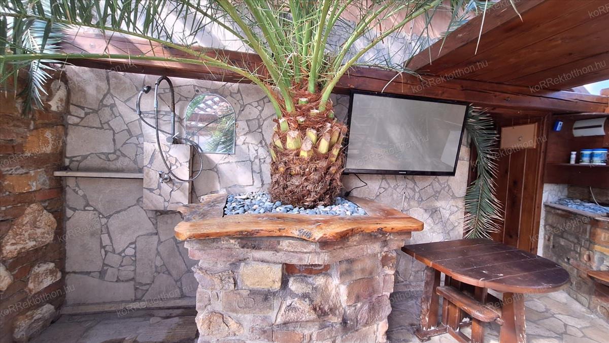 Ezen felül található egy kemence a medence mellett, illetve egy kerti fedett sütögető,