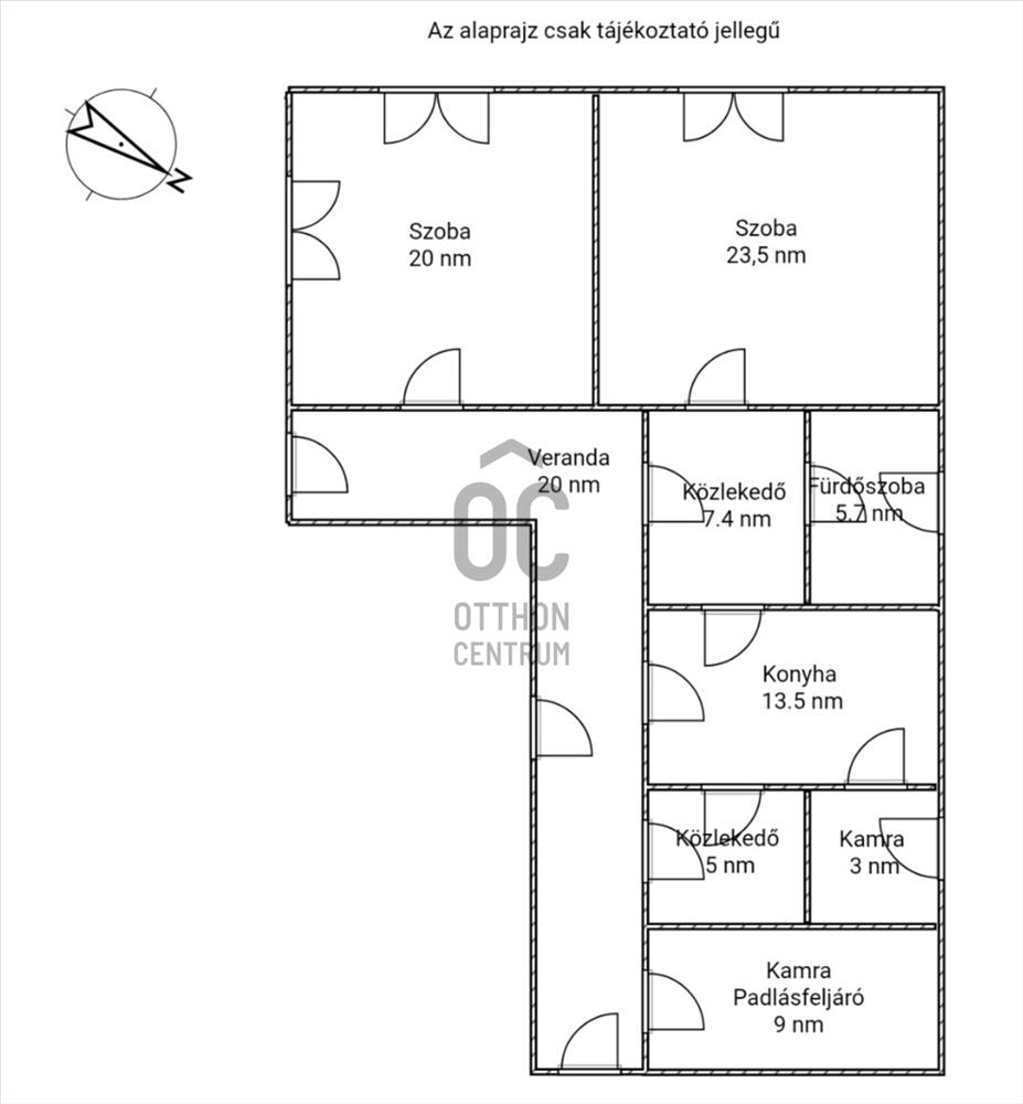 Az ingatlanban jelenleg 2 szoba található, de a sok helység miatt könnyen alakítható és több szobássá lehet tenni.
