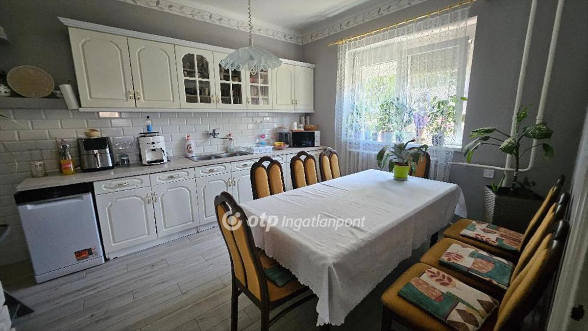 Jász-Nagykun-Szolnok vármegyében, Jászjákóhalmán eladó egy több generáció együttélésére is kiválóan alkalmas családi ház. Az ingatlan 1985-ben épült téglából, és egy 934 nm-es telken helyezkedik el. a 187, 7 nm-es hasznos alapterületű házban négy szoba, két fürdőszoba, valamint egy tágas, étkezős konyha kapott helyet. Az otthon melegéről többféle fűtési mód gondoskodik: vegyes tüzelésű kazán, gázcirkó és hűtő-fűtő klíma is rendelkezésre áll. a ház födémszigeteléssel ellátott, a nyílászárók korszerű, redőnnyel felszerelt műanyag ablakok. a lakótérhez kapcsolódik egy nagy méretű kazánház, valamint egy 20 nm-es fűtött garázs is. Az udvaron található egy különálló melléképület, amely szilikát falazatú, és amelyben helyet kapott egy 16 nm-es garázs, alatta egy ugyanekkora, 16 négyzetméteres pince, egy 24 nm-es helyiség, valamint egy 57 nm-es műhely, amelyhez előtető is tartozik. Ezen felül az ingatlan része még egy 34 nm-es, különálló garázs is, amely számos lehetőséget kínál tárolásra vagy akár vállalkozási célokra. Amennyiben az ingatlan megvásárlásához hitelre lenne szüksége, az OTP kedvező hitelkonstrukcióit is szívesen a figyelmébe ajánlom.Érd: Tamus Angéla +36 70 601 2099