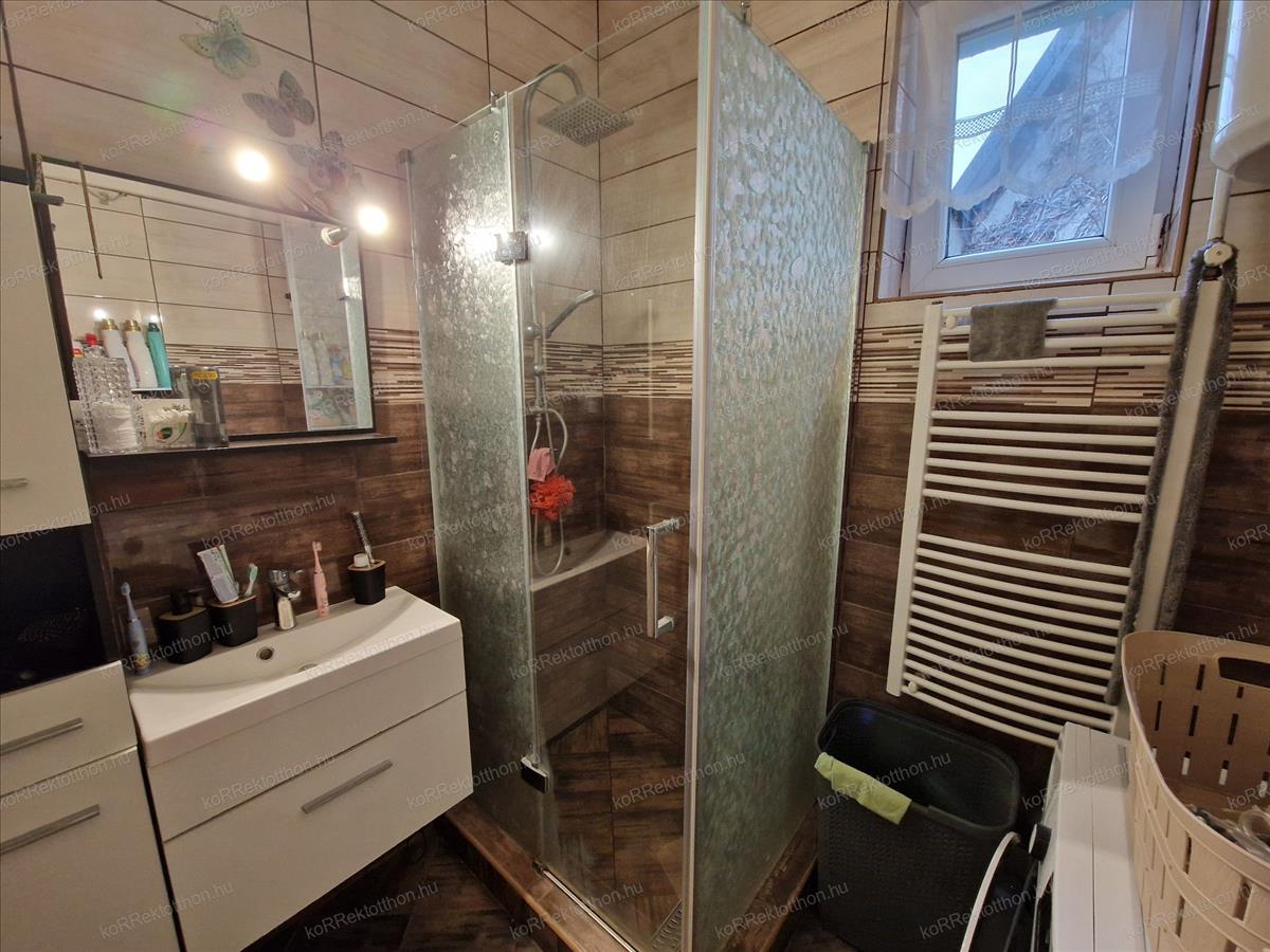 A ház 76 m2 területű, mely néhány éve teljes felújításon esett át. Műanyag nyílászárók, új villanyvezetékek, vízvezetékek kerültek beszerelésre és külső szigetelést is kapott. Télen a kellemes hőmérsékletet egy hatékony, de mégis gazdaságos kondenzációs gázkazán biztosítja, nyáron pedig egy saját split klíma hűsíti a ház lakóit.