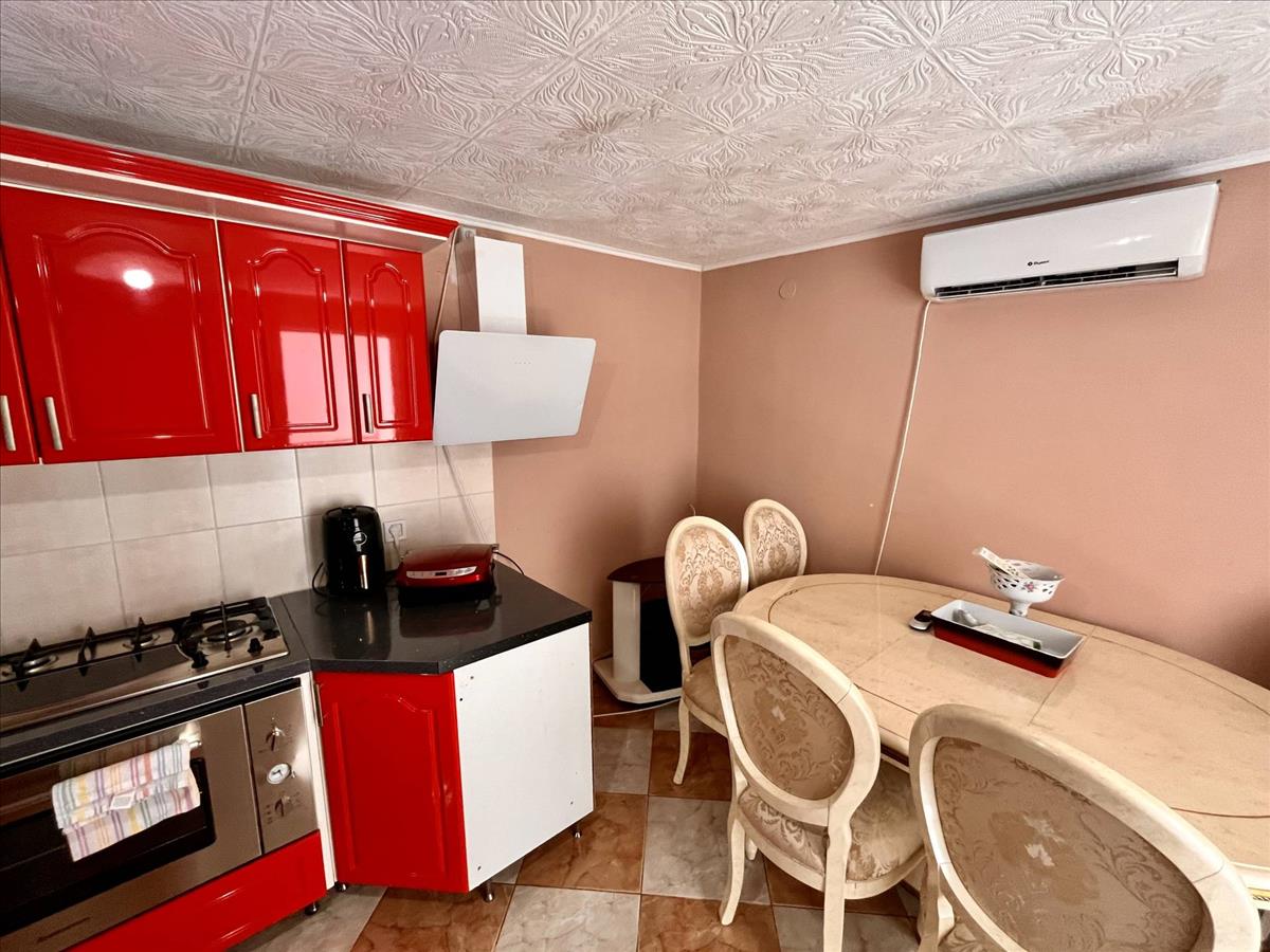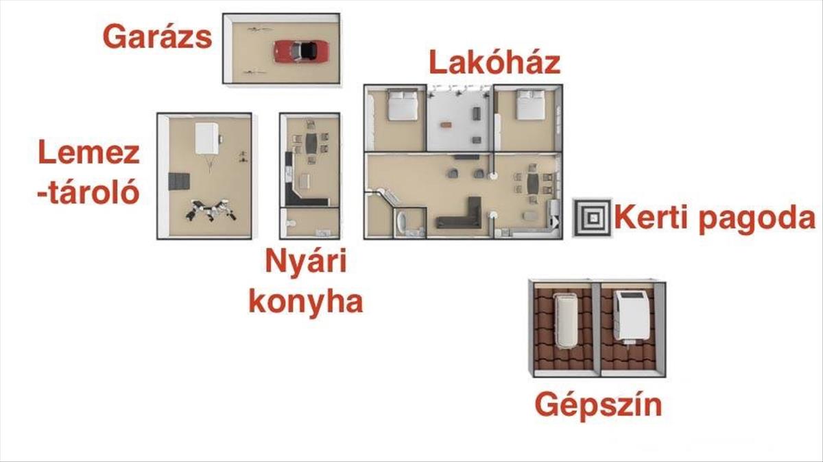 A nyári konyhában lévő piros konyhabútor az irányár része, a fő épületben lévő vajszínű konyhabútor pedig külön 4 millió forintért megvásárolható, valamint a többi bútor is külön alku tárgyát képezi, ha tetszik az ingatlan vevőjének.