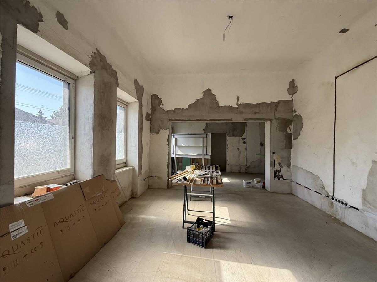 A felújítás elkezdődött, Önre vár a befejezés! Légies és tágas térszerkezet került kialakításra 3 utcai szoba szakszerű egybenyitásával. Megtörtént a nyílászárók műanyagra cserélése, az új áram vezetékek becsövezése, részlegesen az újravezetékelése, a régi burkolatok leverése. Az új víz és szennyvíz csövek megépítése, valamint az egész épület aljzatbetonozása is kész. Ami hátra van és a vevőre vár: villanyszerelés befejezése, új burkolatok és a fűtés, ami a tervek szerint hűtő-fűtő klíma. (Korábban volt gáz fűtés az épületben, de azt megszüntették. ) Remek lehetőség annak aki egyébként is felújításban gondolkodott, hiszen a munka piszkos része el van végezve. Kartonfalakkal a régi szobákra tagolt térszerkezet visszaállítható, azonban jelenleg roppant izgalmas és különleges a bálteremnyi méretű egybefüggő lakótér! Jelenlegi formájában alkalmas akár közösségi események lebonyolítására, kiskereskedelmi célra, vagy átalakítással családok számára. Érdemes kihasználni a felújításhoz az 5+5 milliós állami energetikai korszerűsítési pályázatot illetve az ingyenes födémszigetelést.