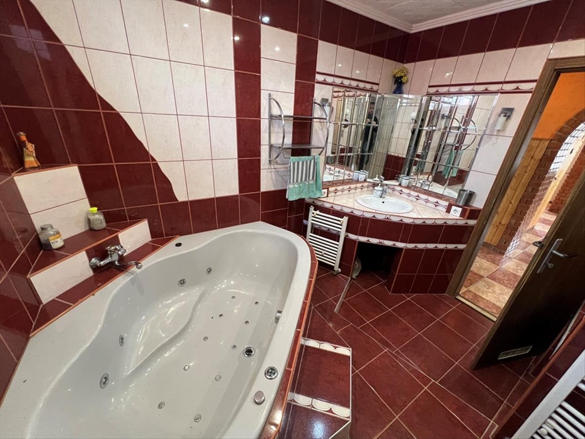 Jobaháza rendkívül kedvelt részén, 3513 m2-es, 20, 5 m széles utcafrontú telken lévő, jelentős felújításokon átesett (nyílászárócsere, tetőhéjazat csere, homlokzati hőszigetelés, alsó szinten villanyvezetékcsere, vízvezetékcsere, fürdő – wc felújítás, burkolatcsere, stb. ) Konyha + étkező + 5 hálószobás, továbbá kamrával is felszerelt, duplakomfortos (2 db fürdőszoba + wc), klimatizált, jó állapotú, 155 m2 hasznos alapterületű családi ház, 6, 33 m2-es erkéllyel, 99 m2 alápincézett résszel, 86, 6 m2-es garázzsal, 19, 06 m2-es garázzsal, 92 m2-es műhellyel, továbbá 7 m x 3, 5 m-es fedett épített medencével és saját kerti halastóval eladó!