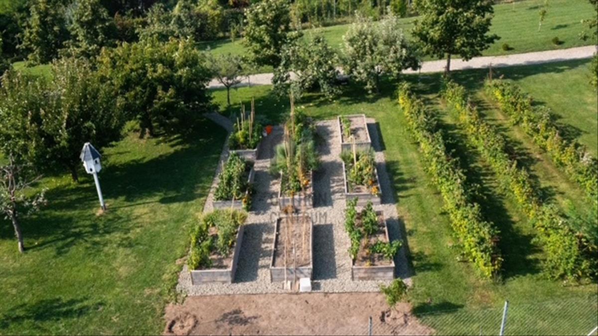 A kert nem csupán ápolt, hanem élő: automatizált locsolórendszer táplálja, külön mérőórával, takarékos rendben. Egy kertész keze nyoma szinte naponta újrarajzolja a formákat. Az angolkert finom rendezettsége, a gyümölcsfák bősége, a magaságyások gondosan sorakozó világa mind egy vidéki idill részei. Erdő öleli, hegy figyeli, őzek lépnek át rajta nesztelenül.
