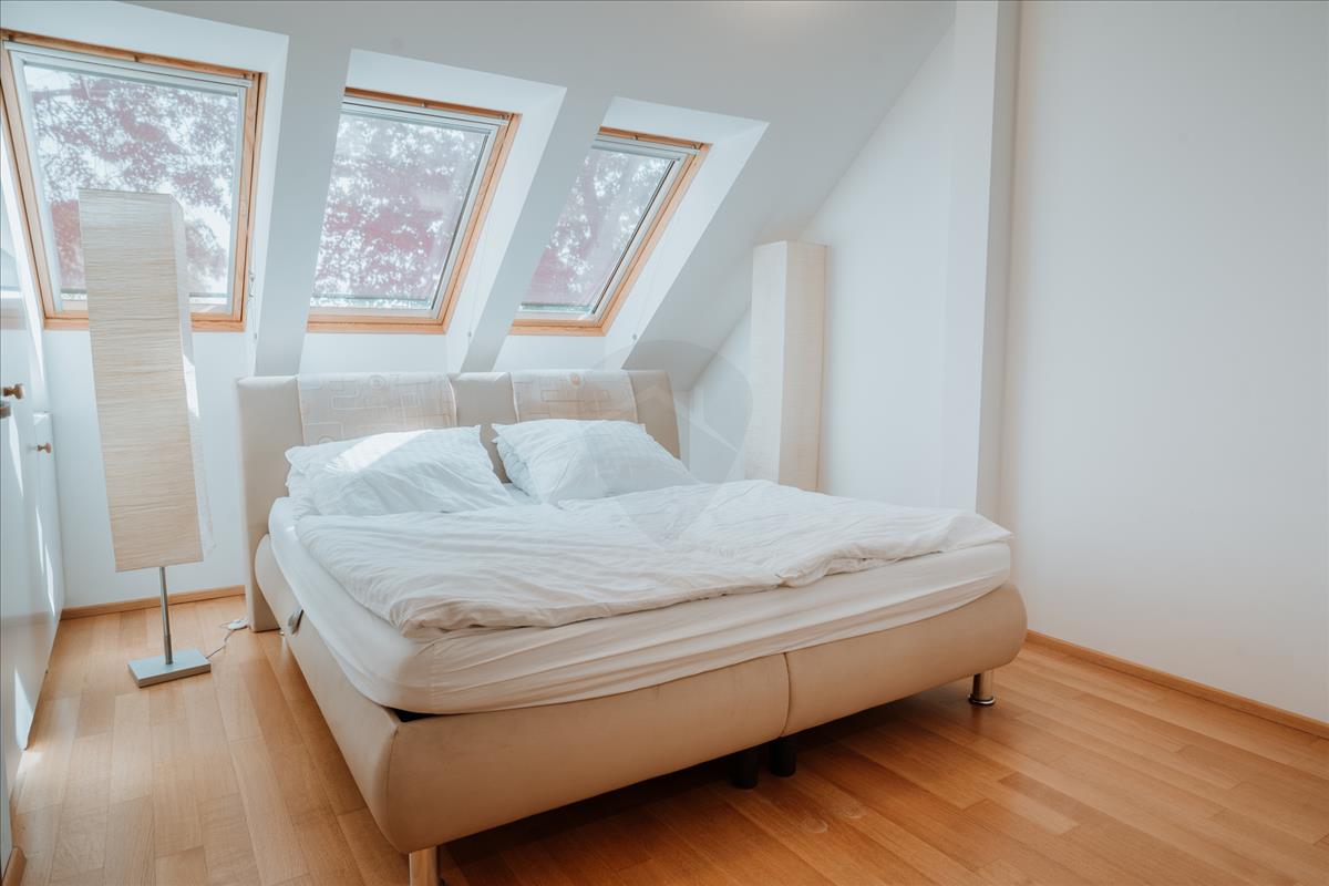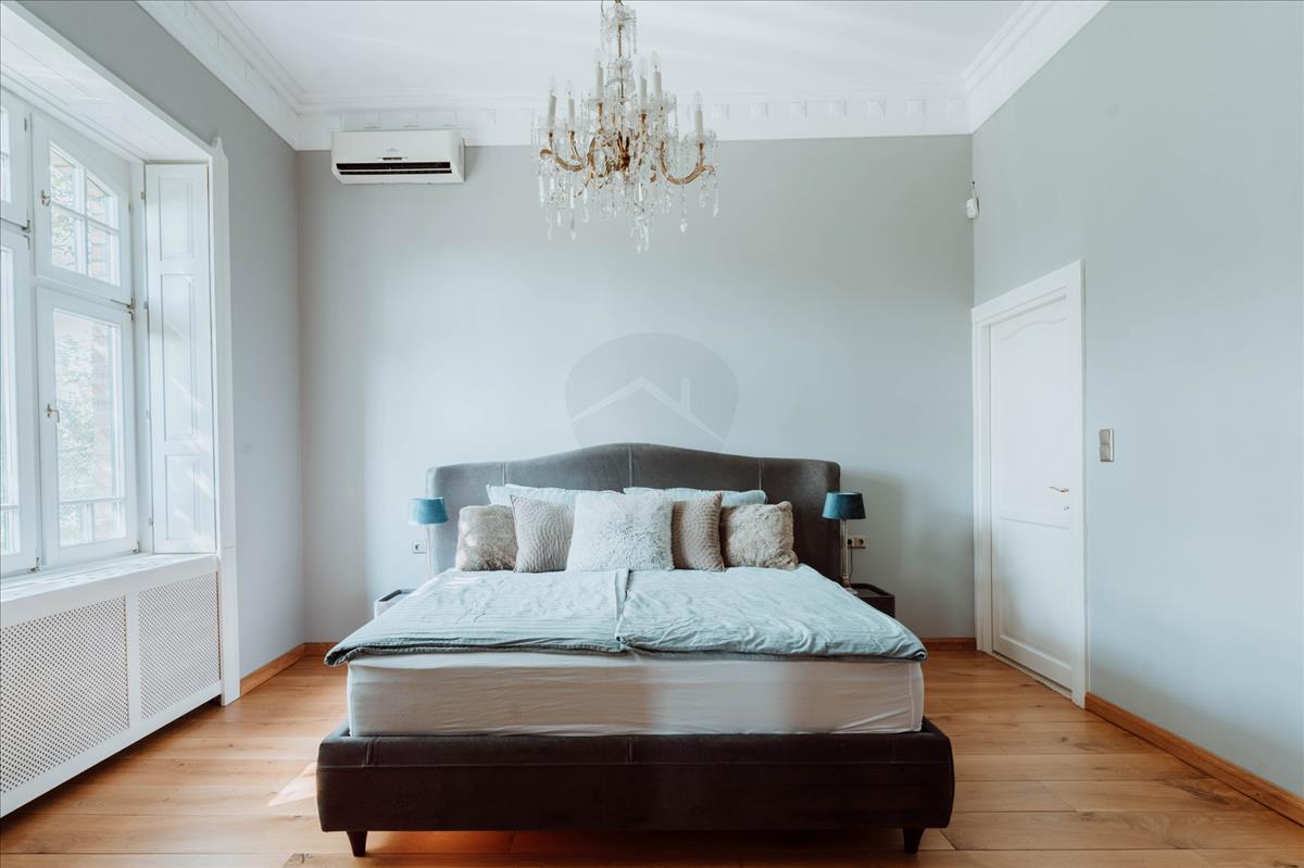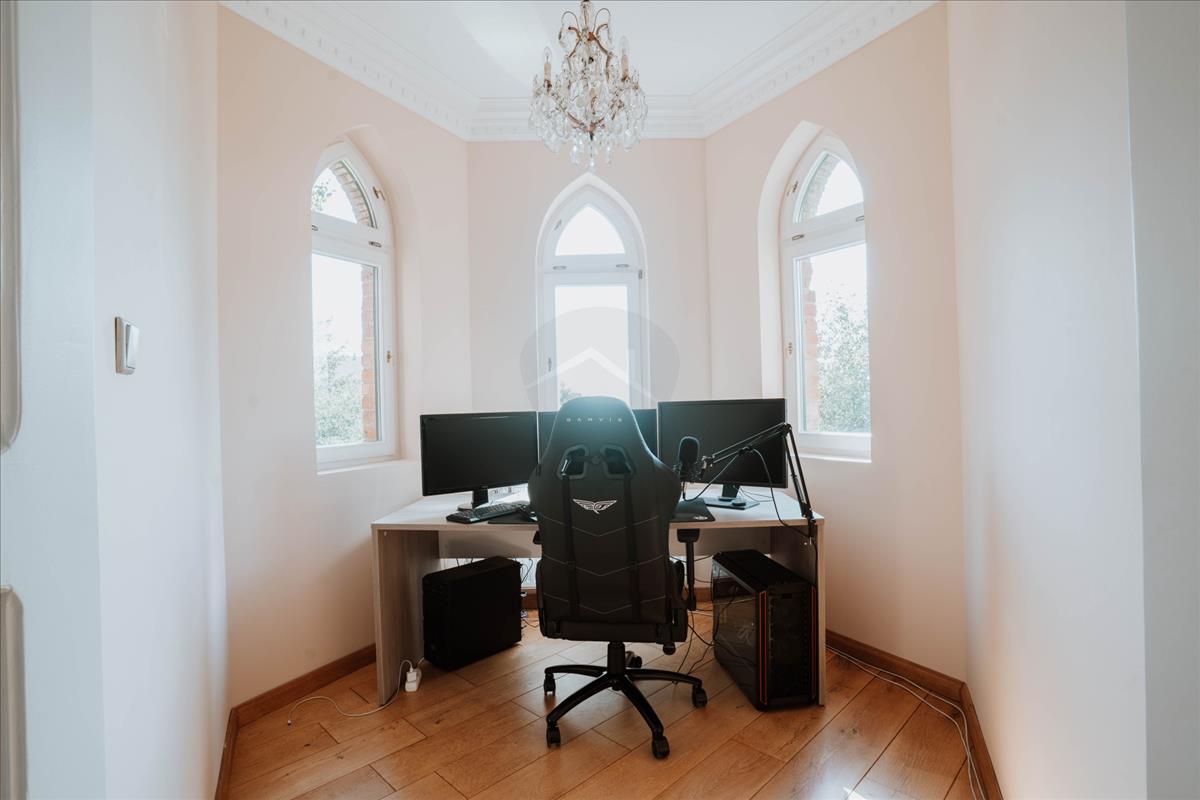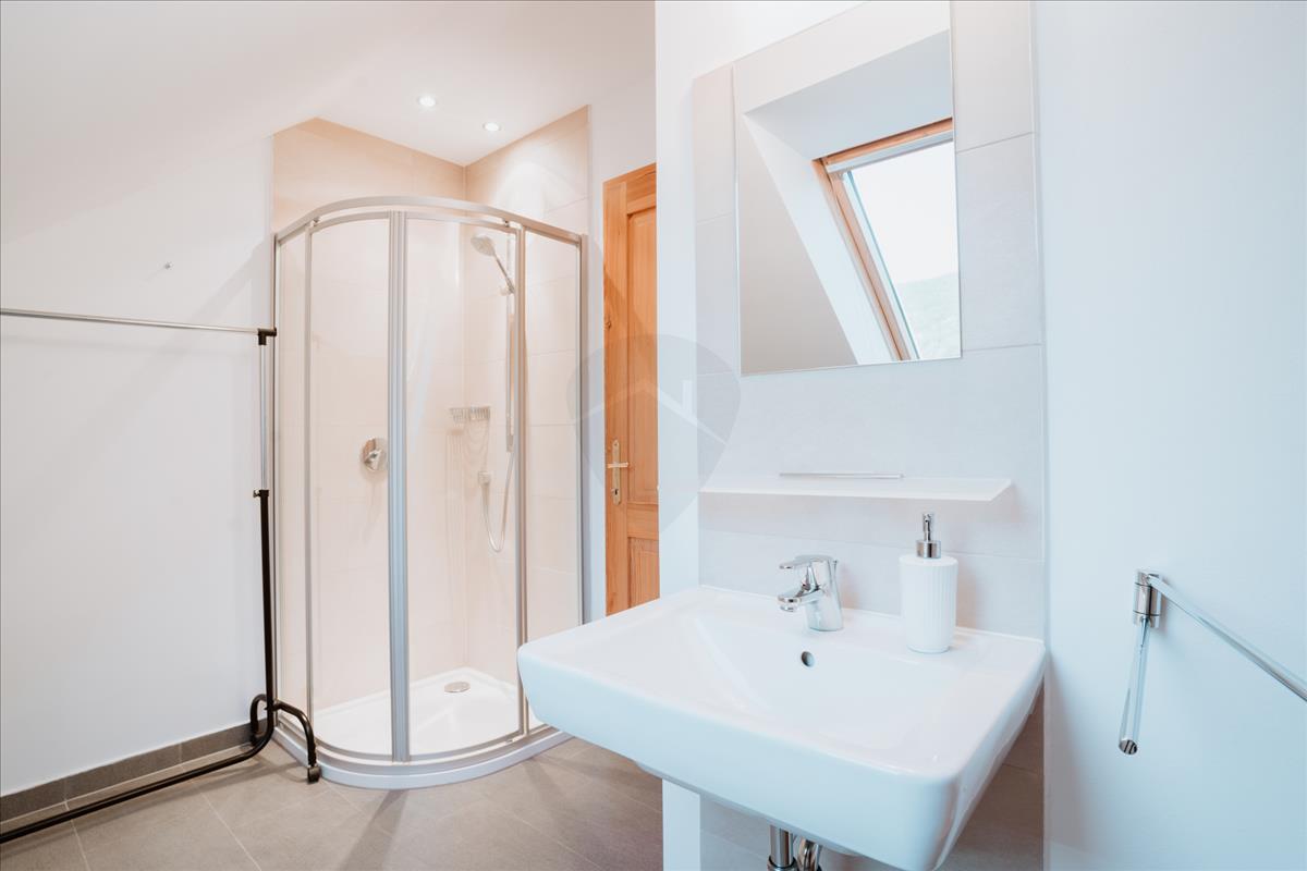 A felső szintre egy elegáns kovácsoltvas lépcső vezet. Itt három szoba, két fürdőszoba (egy kádas és egy zuhanyzós) és egy konyha található. Az emeleten a légkondicionálás garantálja a kellemes klímát a melegebb hónapokban.