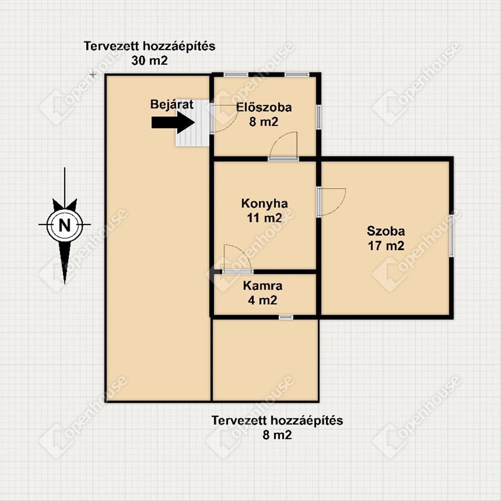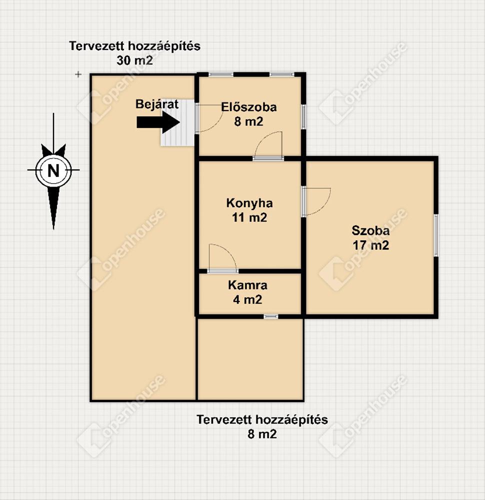 Helyiségek: szoba, konyha, kamra, előszoba