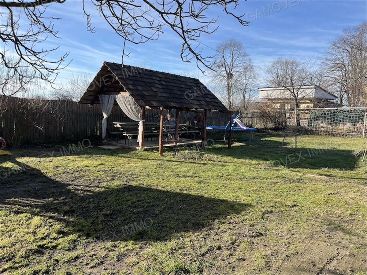 Az udvar rendezett, melléképülettel, aknás garázzsal, esőtől, naptól tetővel védett kerti étkezővel. . .