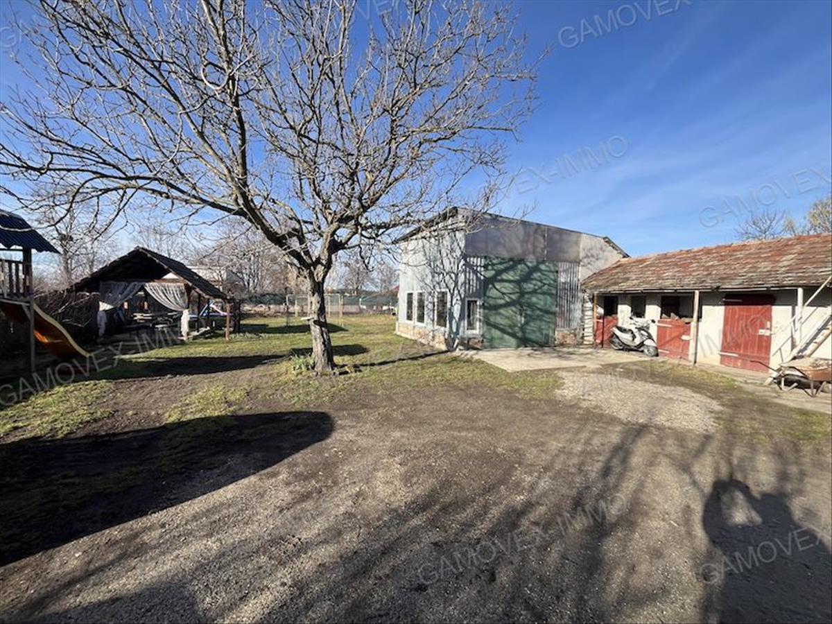 A hátsó teraszról nyílik egy jelenleg fodrászatként funkcionáló helyiség, az udvaron pedig egy teljesen felszerelt autószerelő műhely található. a telken minden közmű rendelkezésre áll. Az utcában épp most készül az új, széles, térkövezett járda.