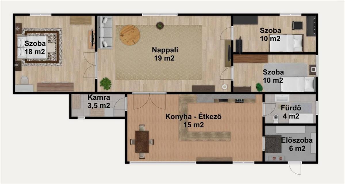 - Nappali + 3 szoba