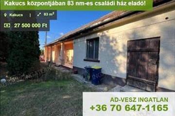 Eladó Kakucs központjában egy 83m2-es felújítandó gangos családi ház 663m2-es telekkel!Az 60-es években tégla alapra, vályogból épült családi házban 2 szoba, konyha-étkező, fürdőszoba, külön bejáratú kamrák kerültek kialakításra.
