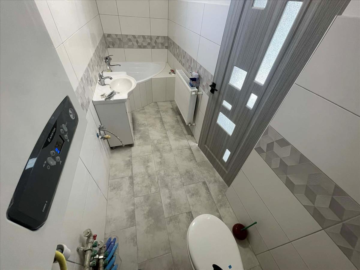 A szobák új laminált parkettával, a többi helyiség új járólapokkal burkolt.