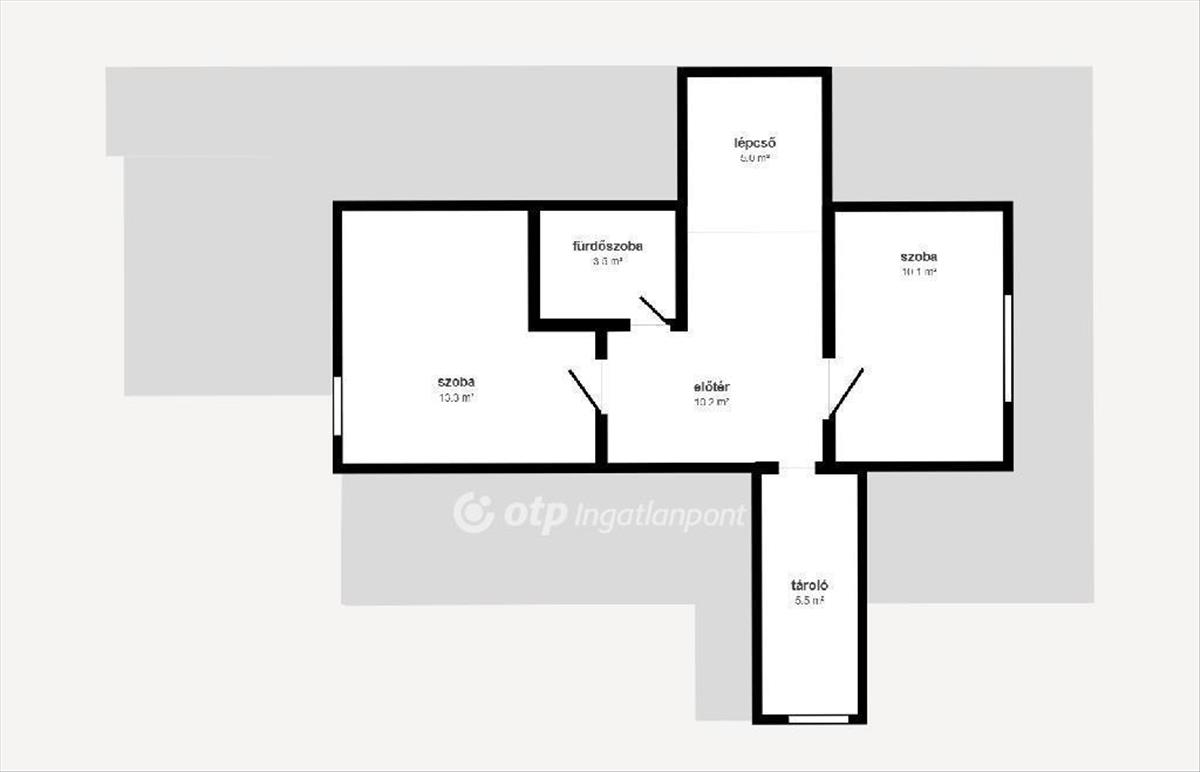 Földszint: nappali, konyha, 2 szoba, fürdőszoba és külön mosókonyha. Lejárat a pincébe, illetve feljárat az emeletre.