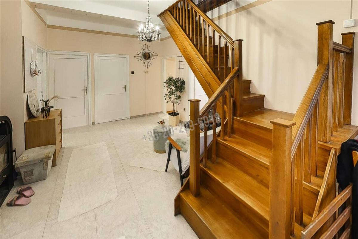 A nappaliból tömör tölgyfalépcső vezet fel az emeletre, ahol amerikai konyhás, klímával felszerelt nappali, két hálószoba, gardrób és fürdőkáddal felszerelt fürdőszoba+wc lett kialakítva. Az egyik hálószobához szintén tartozik erkély. Ez a szint, ha kap egy külön bejáratot, akkor önálló lakrészként is funkcionálhat.
