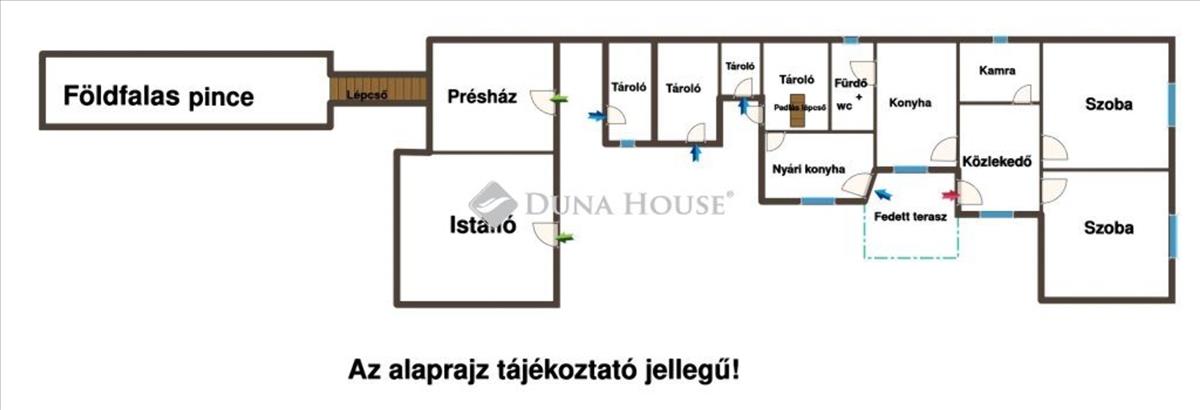 Földfalas pincéje 18, 5 m2, előterében 13, 5 m2 présházzal.