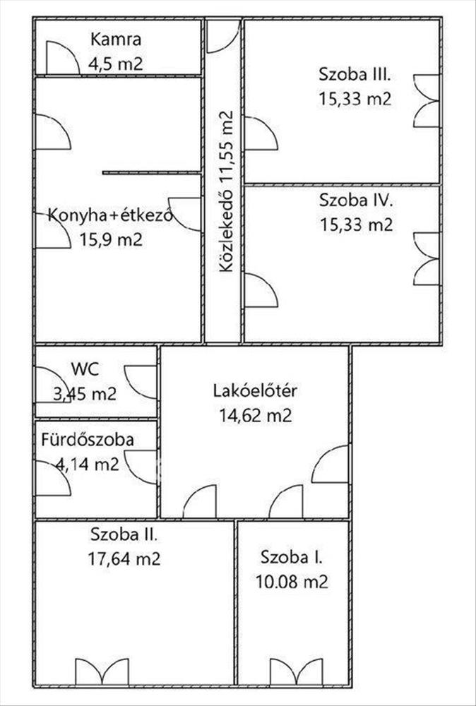 Szobák: 4 külön bejáratú (vagy jól szeparálható) egész hálószoba + egy tágas (14, 62 m2-es) lakóelőtér, ami kényelmes nappaliként funkcionálhat. Több generációnak vagy többgyermekes családoknak is tökéletes!