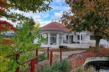 A több mint 3 000 m²-es telken fekvő, eredetileg panziónak tervezett villa ritka lehetőség. a parkosított birtokon kerti tó híddal, fedett pergola, melléképület, tároló, veteményes ház, valamint több autó számára kialakított térkövezett beálló található. a házat térköves járda veszi körbe.