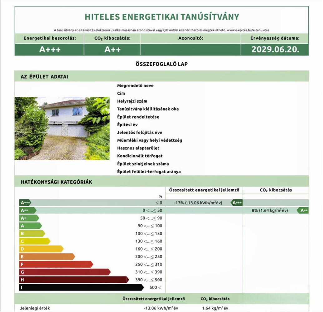 A déli tetőre napelemes rendszer került kiépítésre. Mivel a ház kizárólag villamos energiát használ, a napelem rendszer kiépítése óta az éves közüzemi díja a háznak nulla, tehát a fűtés, a világítás, melegvíz előkészítés költségmentes!