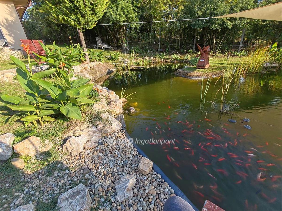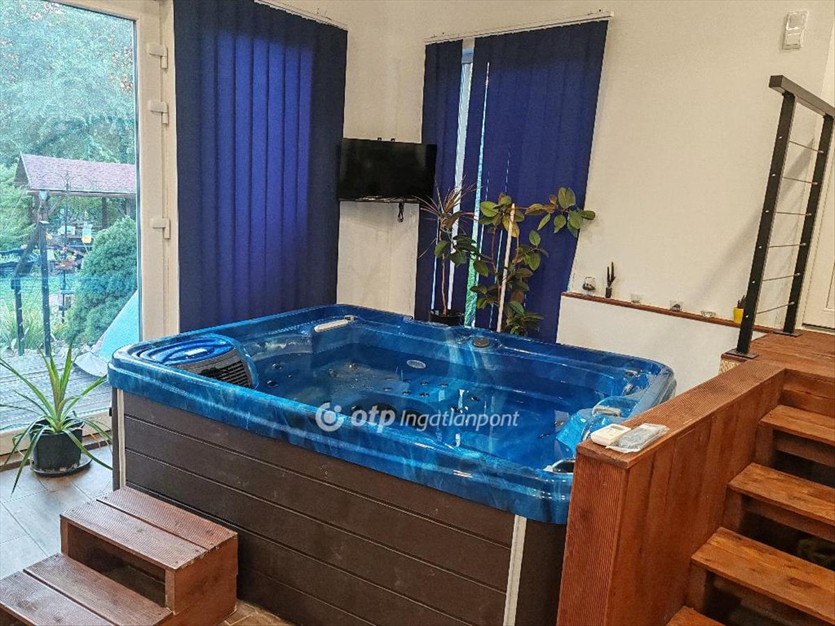 A telken külön wellness épület található jakuzzival, infraszaunával, esőztetős zuhanyzóval és pihenőtérrel, közvetlen napozóterasszal. a kertben kerti tó, patak, kiülő és sütögető kapott helyet, fúrt kúttal kiegészítve.