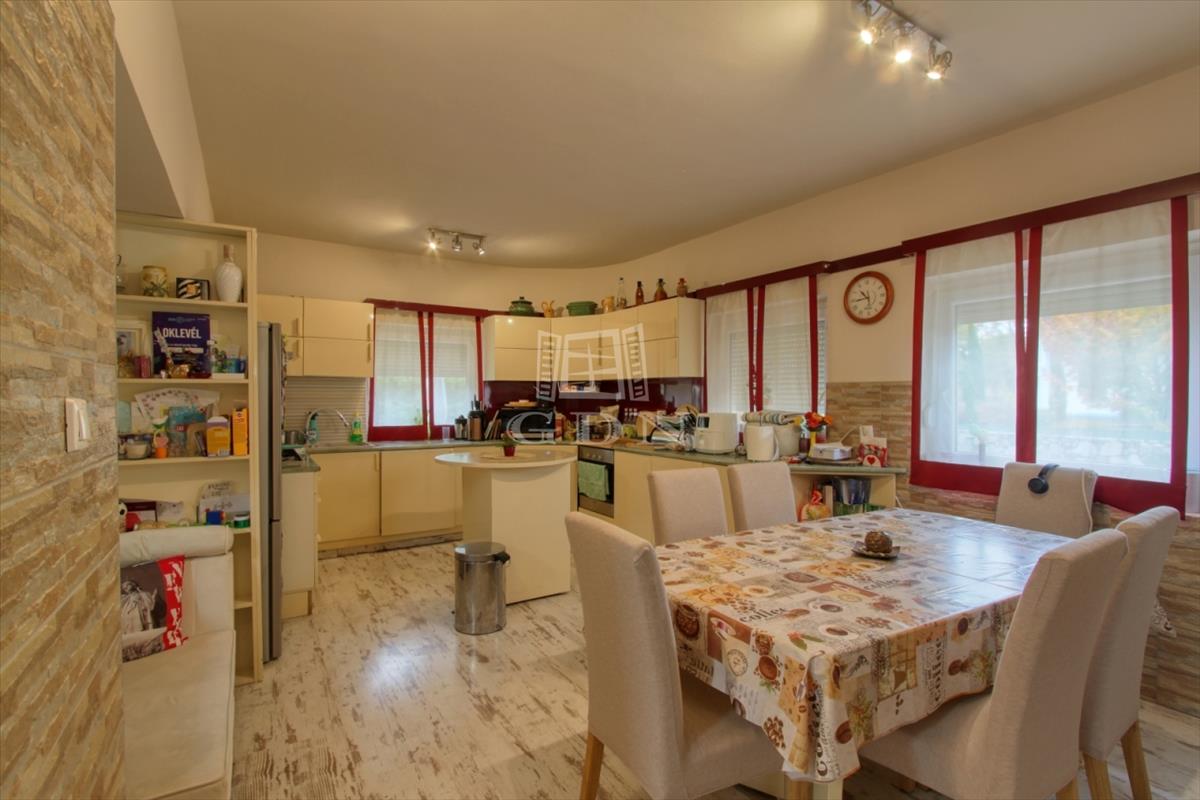 4887. Kápolnásnyéken, Velencei-tóhoz közeli településrészen, 1988-ban épült, 2019-2012 között és 2022-ben felújított, háromszintes, galériás nappali + 4 hálószobás, hőszigetelt, 10 kW napelem rendszerrel rendelkező családi ház, nagy méretű fedett terasszal, az egész épület alatt fűthető szuterénnel, benne garázzsal, parkosított 902 m2-es telken eladó.Szerkezet: