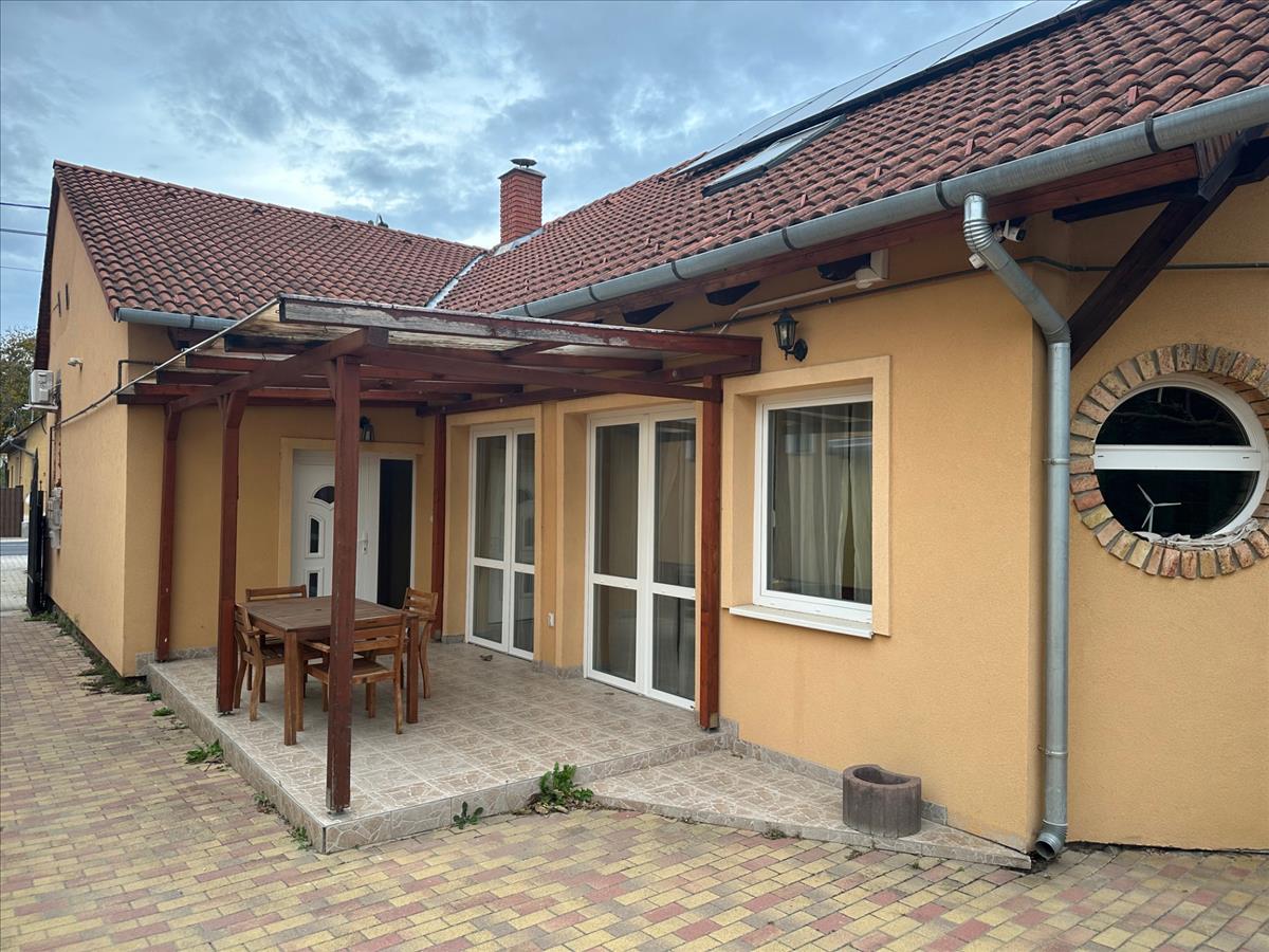 A telek igényesen gondozott, árnyas fákkal parkosított, itt helyet kapott egy fedett kerti sütögető is. a kapubehajtó pedig motorizált, a kényelmes udvari beálláshoz.