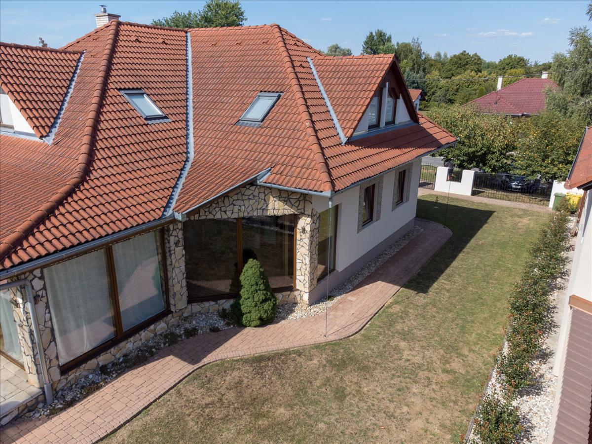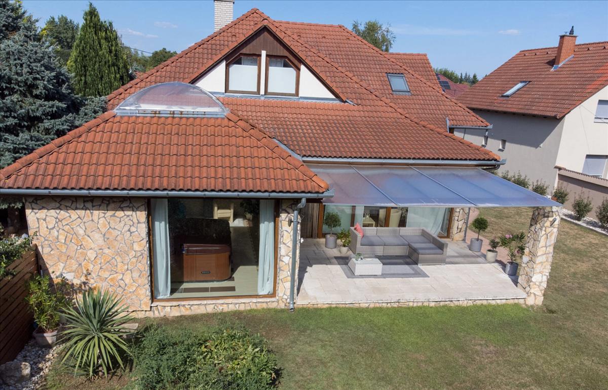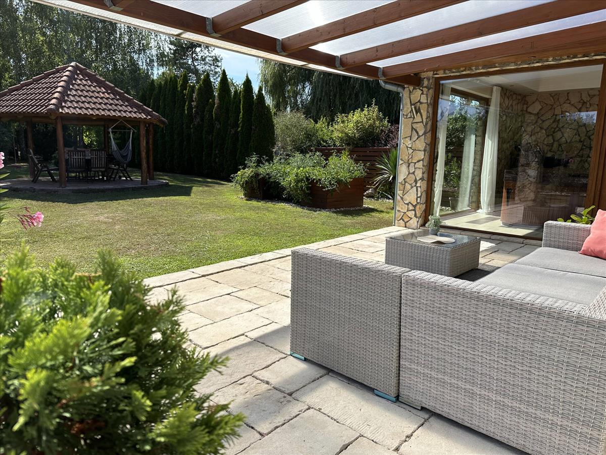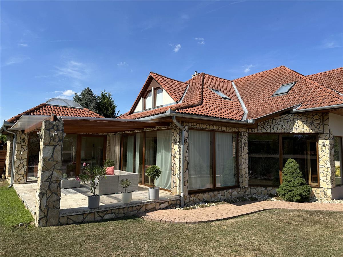 A beautiful family house has become for sale in Kaposmérő. The property is located in a quiet, traffic-free street of the town. This fabulous home sits on a 1050m2 level plot. The front and rear landscaped courtyard is also for relaxation, with a garden bench and bacon oven. The lawn is kept fresh by an automatic irrigation system in the hot weather. The property has large insulated French windows to lure the sun's rays in and make the spaces as bright as possible. The main building was built in 2002 with 38 bricks and after the next major extension, reached its current total size of 309 m2 in 2010. The roof cladding is concrete tiles and of course all windows and doors are of high quality and insulated. The double garage is located on the street front, heated and accessible from the property. Entering through the main entrance, a large hallway leads to the bedrooms on the lower level, two of which are adjacent to each other on the left. To the right of the door to the garage is a separate toilet and a larger bathroom with a massage shower bath and a separate shower. On the lower level there is a sumptuous living room with dining table and a beautiful kitchen with built-in pantry. The fully enclosed spa, added in the second phase, is accessible from the living room and one of the bedrooms. Under a large overhanging dome is a family sized Jacuzzi where you can spend time at the end of the day at your leisure, here you have the possibility to sit in an equally large sauna to relax for a while, completely undisturbed. This room can also be heated, of course. The staircase to the upper part of the room is of a unique design and again offers spacious and very bright spaces. The rooms are accessed from an open hallway, where there are two bedrooms of similar size, a walk-in wardrobe and a large playroom for the children to relax. Also on this level there is a large bathroom with toilet and a sumptuous sized living room for maximum comfort. The property is air-conditioned, with underfloor heating and radiators to help maintain a comfortable temperature in cooler weather. The property has been upgraded with electricity during the extension. From the street you can reach everything you need for everyday life in a few minutes. In the village there is a shop, pharmacy, school, kindergarten, petrol station and almost everything is within reach, if there are other needs, the town is a few minutes by car. I would recommend this wonderful home to larger families who are looking for peace and quiet, but don't want to lose the proximity to the big city. This property is great, right? Please call for more information and to make an appointment! If you are looking to buy or sell, please contact the Home Manager agents! We can help you achieve your goals, anywhere in the country! Should you need a favourable loan offer, our advisors will select the most suitable one for you from a wide range of banks, following a free consultation! Have a wonderful and productive day! FIX 3% lakáshitelre megvehető