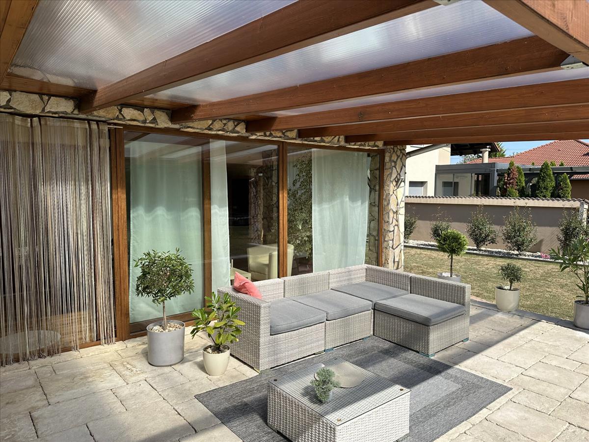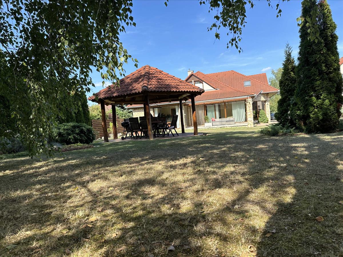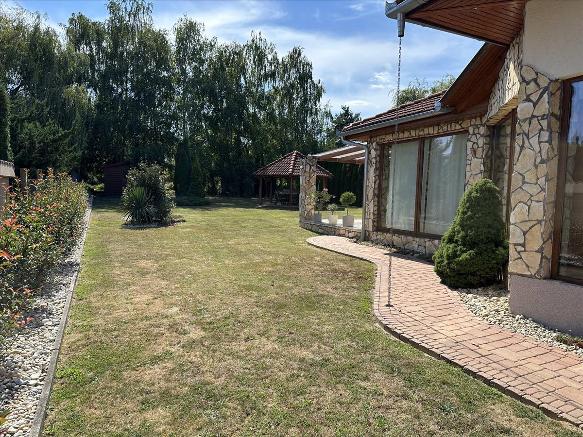 A beautiful family house has become for sale in Kaposmérő. The property is located in a quiet, traffic-free street of the town. This fabulous home sits on a 1050m2 level plot. The front and rear landscaped courtyard is also for relaxation, with a garden bench and bacon oven. The lawn is kept fresh by an automatic irrigation system in the hot weather. The property has large insulated French windows to lure the sun's rays in and make the spaces as bright as possible. The main building was built in 2002 with 38 bricks and after the next major extension, reached its current total size of 309 m2 in 2010. The roof cladding is concrete tiles and of course all windows and doors are of high quality and insulated. The double garage is located on the street front, heated and accessible from the property. Entering through the main entrance, a large hallway leads to the bedrooms on the lower level, two of which are adjacent to each other on the left. To the right of the door to the garage is a separate toilet and a larger bathroom with a massage shower bath and a separate shower. On the lower level there is a sumptuous living room with dining table and a beautiful kitchen with built-in pantry. The fully enclosed spa, added in the second phase, is accessible from the living room and one of the bedrooms. Under a large overhanging dome is a family sized Jacuzzi where you can spend time at the end of the day at your leisure, here you have the possibility to sit in an equally large sauna to relax for a while, completely undisturbed. This room can also be heated, of course. The staircase to the upper part of the room is of a unique design and again offers spacious and very bright spaces. The rooms are accessed from an open hallway, where there are two bedrooms of similar size, a walk-in wardrobe and a large playroom for the children to relax. Also on this level there is a large bathroom with toilet and a sumptuous sized living room for maximum comfort. The property is air-conditioned, with underfloor heating and radiators to help maintain a comfortable temperature in cooler weather. The property has been upgraded with electricity during the extension. From the street you can reach everything you need for everyday life in a few minutes. In the village there is a shop, pharmacy, school, kindergarten, petrol station and almost everything is within reach, if there are other needs, the town is a few minutes by car. I would recommend this wonderful home to larger families who are looking for peace and quiet, but don't want to lose the proximity to the big city. This property is great, right? Please call for more information and to make an appointment! If you are looking to buy or sell, please contact the Home Manager agents! We can help you achieve your goals, anywhere in the country! Should you need a favourable loan offer, our advisors will select the most suitable one for you from a wide range of banks, following a free consultation! Have a wonderful and productive day! FIX 3% lakáshitelre megvehető