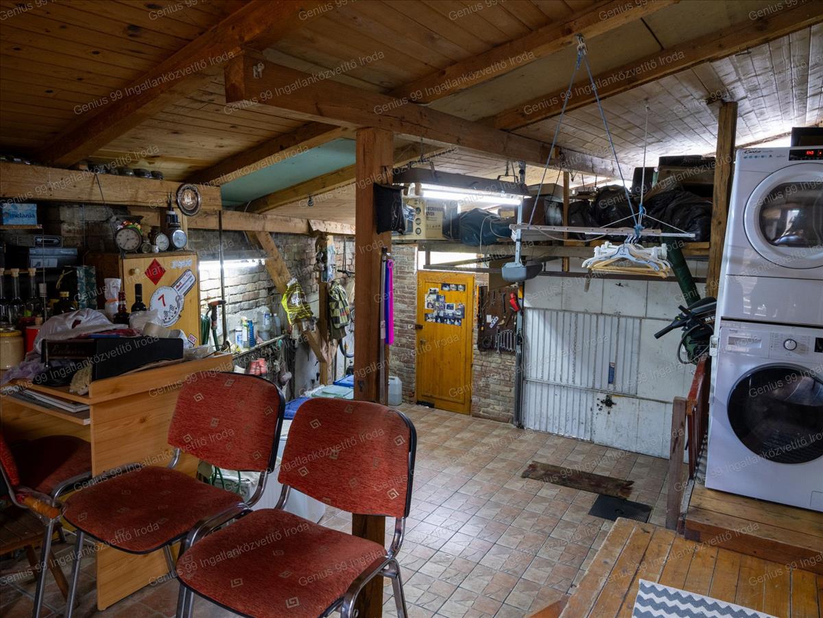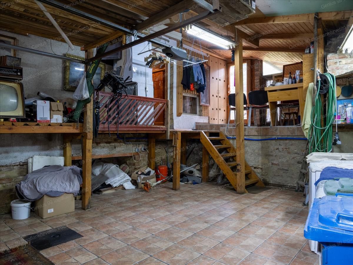 A ház egyik része alatt pince is található, amely kiváló pakolási vagy tárolási lehetőséget biztosít. A 262 m²-es, rendezett udvar méretéhez képest meglepően csendes és nyugodt, ideális a pihenéshez vagy egy kis kert kialakításához.