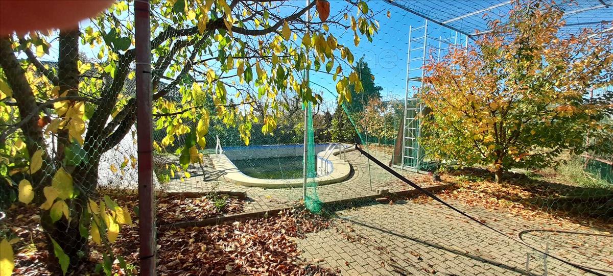 3 Hálószoba, nagy nappali van kialakítva, és egy nagy beüvegezett terasz is rendelkezésre áll. a magánszféra védelmében mindegyik szoba külön folyósóról nyílik és külön fűrdővel és wc-vel rendelkezik. a lakásból bentről megközelíthető a garázs illetve a kazánház is. 3 Féle fűtéssel rendelkezik, van gázkazán és vegyestüzelésű kazán is, és a villanyfűtés is megoldott napelemekkel. a járólapos helyiségekben padlófűtés is kialakításra került a még nagyobb kényelem miatt, illetve a nappaliban egy egy egyedi kandallóval is lehet fűteni. a ház rezsije épp ezért nagyon kedvező. Az udvarban egy medence is a kényelmet szolgálja. a kertben sokféle gyümölcsfa található alma, körte, meggy, cseresznye, málna, egres stb. a telket füge ültetvény veszi körbe. a melléképületben műhely és egy kinti konyha is található, ezenkívül egy kitéglázott borospince és présház is van.