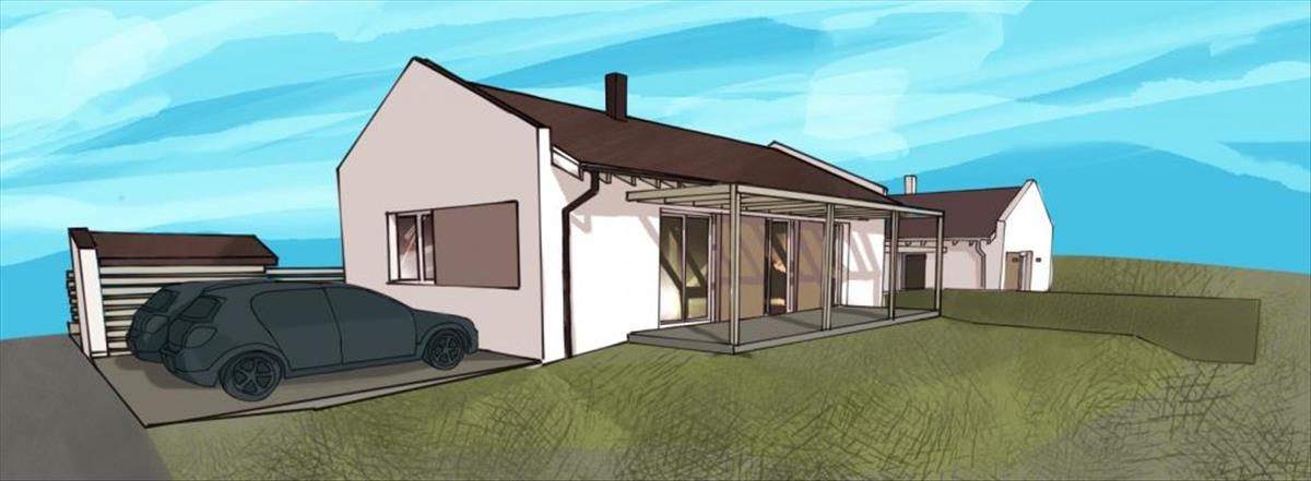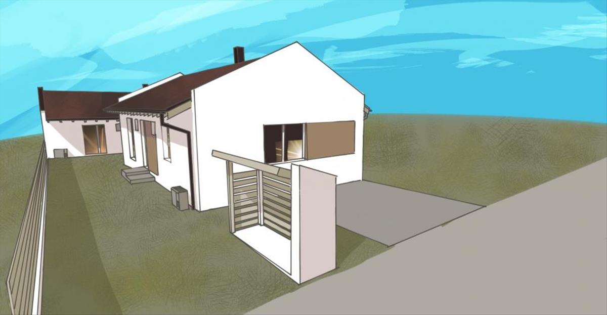 Kaposváron, a Kaposhegy utcában kínáljuk megvételre ezt a kivitelezés alatt álló újépítésű családi házat. Hivatalosan egy ikerház utcafronti része, gyakorlatilag teljesen önálló épület egy összközműves belterületi telken. Alapterülete 90 m2, délre néző 25 m2-es terasszal, 2 db gépkocsibeállóval, 387, 6 m2-es saját kertrésszel. Jelenleg kb. 75 %-Os készültségi fokban van, vagyis kívülről kész, belül válaszfalazásra vár. Az ár a kulcsrakész, befejezett állapotot tartalmazza! a belső válaszfalak műszaki kötöttségek figyelembe vételével még természetesen alakíthatók. a tervek szerint praktikus az elrendezés, a ház egyik felében lesz a tágas amerikai konyhás nappali, azaz a közösségi tér, a másik oldalon három külön bejáratú hálószoba és a fürdő, azaz a privát szféra. a teraszra ki lehet menni a nappaliból és két szobából is.A ház főfalazata sip (Structural Insulated Panel)-ből készült, a külső nyílászárók fehér színű műanyag keretesek 3 rétegű hőszigetelt üvegezéssel, rejtett redőnytok beépítésével. a ház fűtését-hűtését (opcióban kérhető) és meleg víz ellátását hőszivattyú biztosítja (ez 40%-kal olcsóbb fűtési költséggel bír a gázzal szemben, 26 Ft/kWh árammal működtethető a fűtési szezonban). a hőszivattyú mellett esetleges kiegészítő fűtéshez vagy látványkandallóhoz, kályhához kémény épült. a homlokzati hőszigetelés 10 cm vastag, már kész. a ház energiahatékonysága „a” minősítésű, és minden a mai kor hatályos jogszabályi és műszaki követelményeinek megfelelő.