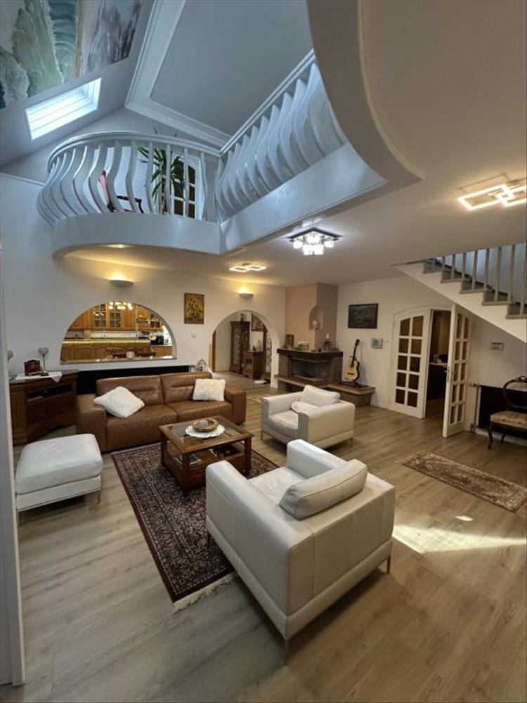 A felső szinten pedig további hálószobák, egy tágas nappali, négy szoba, fürdő és wc kapott helyet, így tökéletes otthont nyújt akár nagyobb családoknak is.