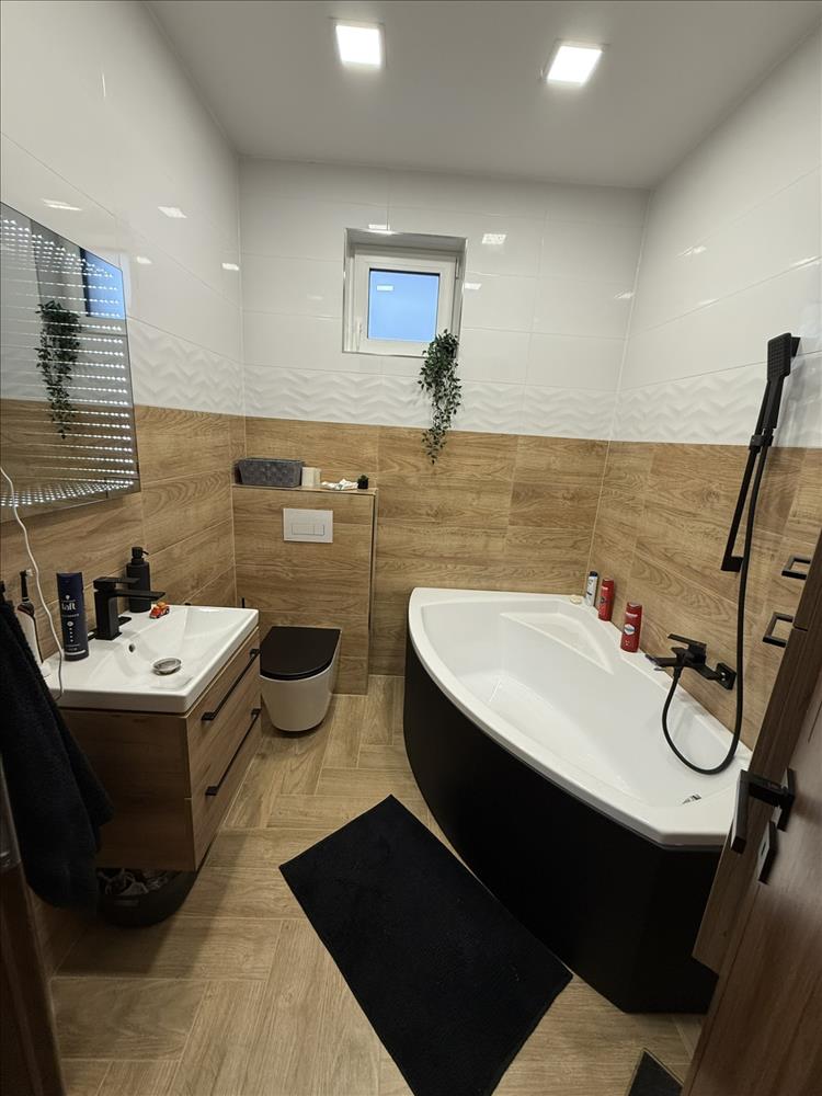 A házban megtalálható 1 db fürdő, zuhanyzó, wc, 1 db fürdő, wc, illetve egy vendég wc is.