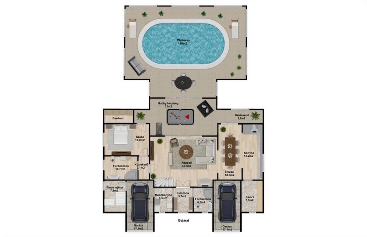 - wellness részleg: 140 m2
