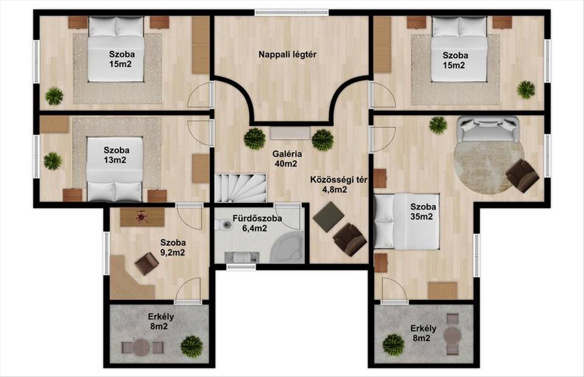 - szoba: 35 m2