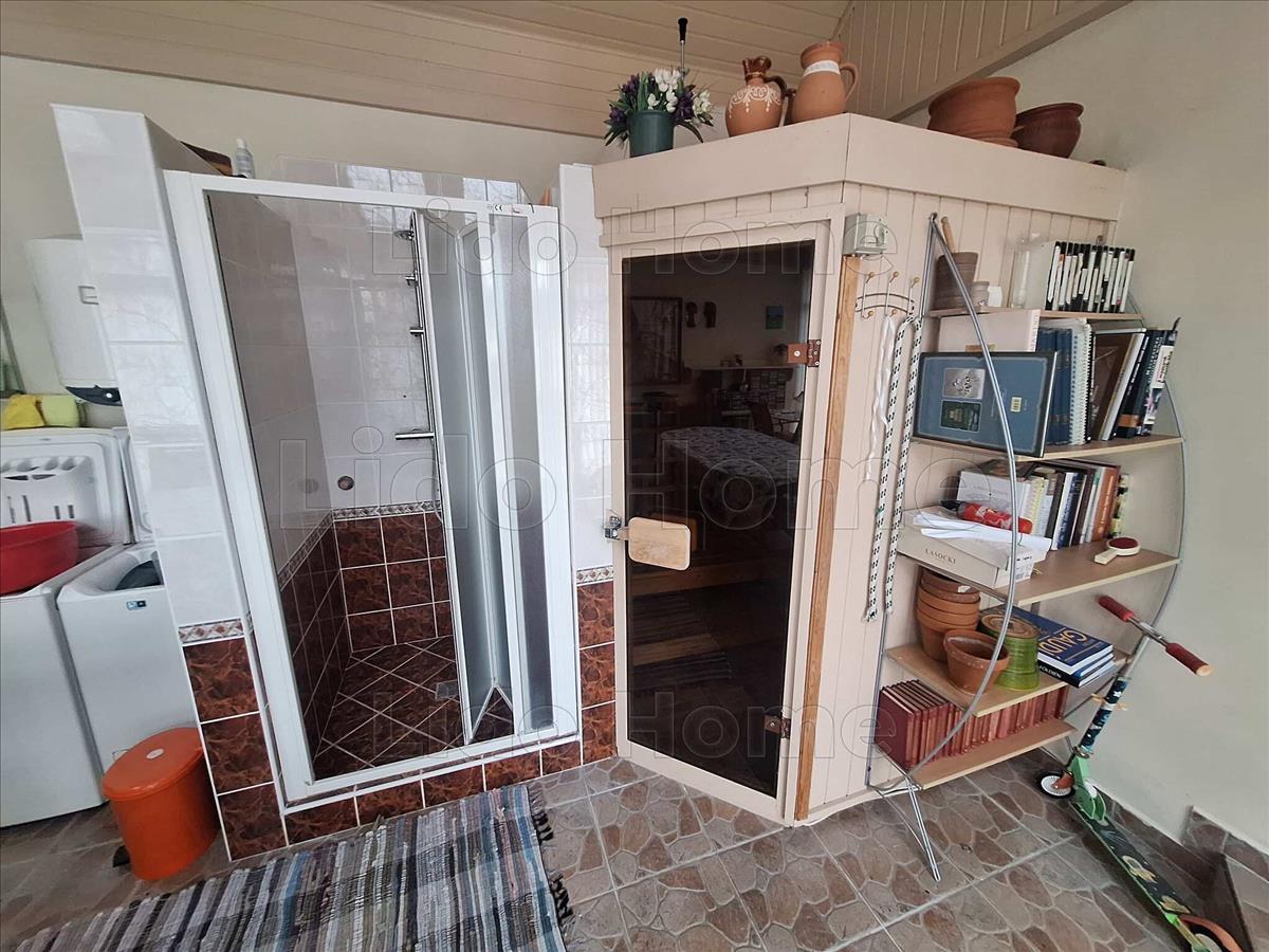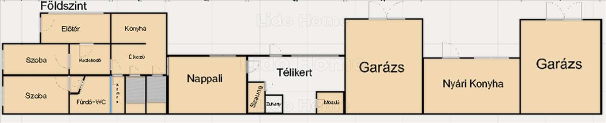 2 különnyíló szoba, tágas nappali, konyha étkezővel, beépített előtér, fürdőszoba + wc, télikert, ahol szauna, zuhanyzó és külön wc került kialakításra
