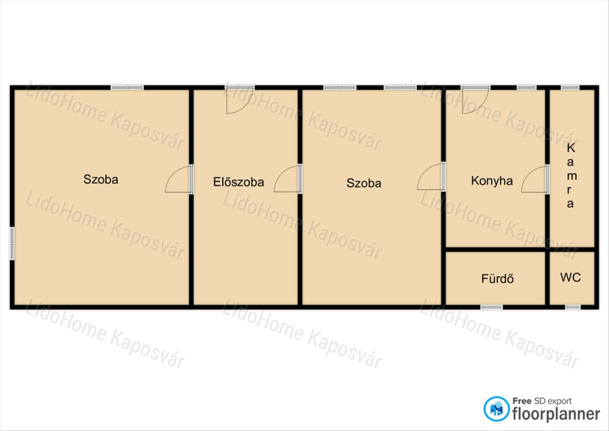 - elosztása kedvező : 2 szoba, konyha, kamra, fürdő, wc, előszoba alkotja,