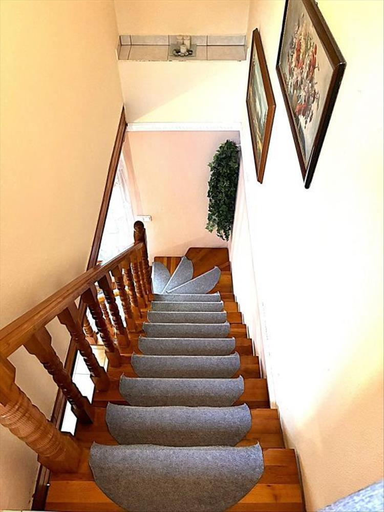 Az alsó szinten egy tágas előtér, 3 szoba, nappali, konyha, egy kádas fürdőszoba és egy külön wc kapott helyet. a felső szinten 3 szoba, közlekedő, egy kádas fürdőszoba és egy wc található. Az emeleti szobákból panorámás kilátás tárul elénk.