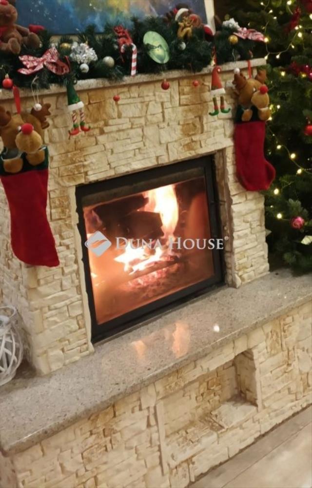 vízteres, fa tüzelésű kandalló (a nappali központi eleme)