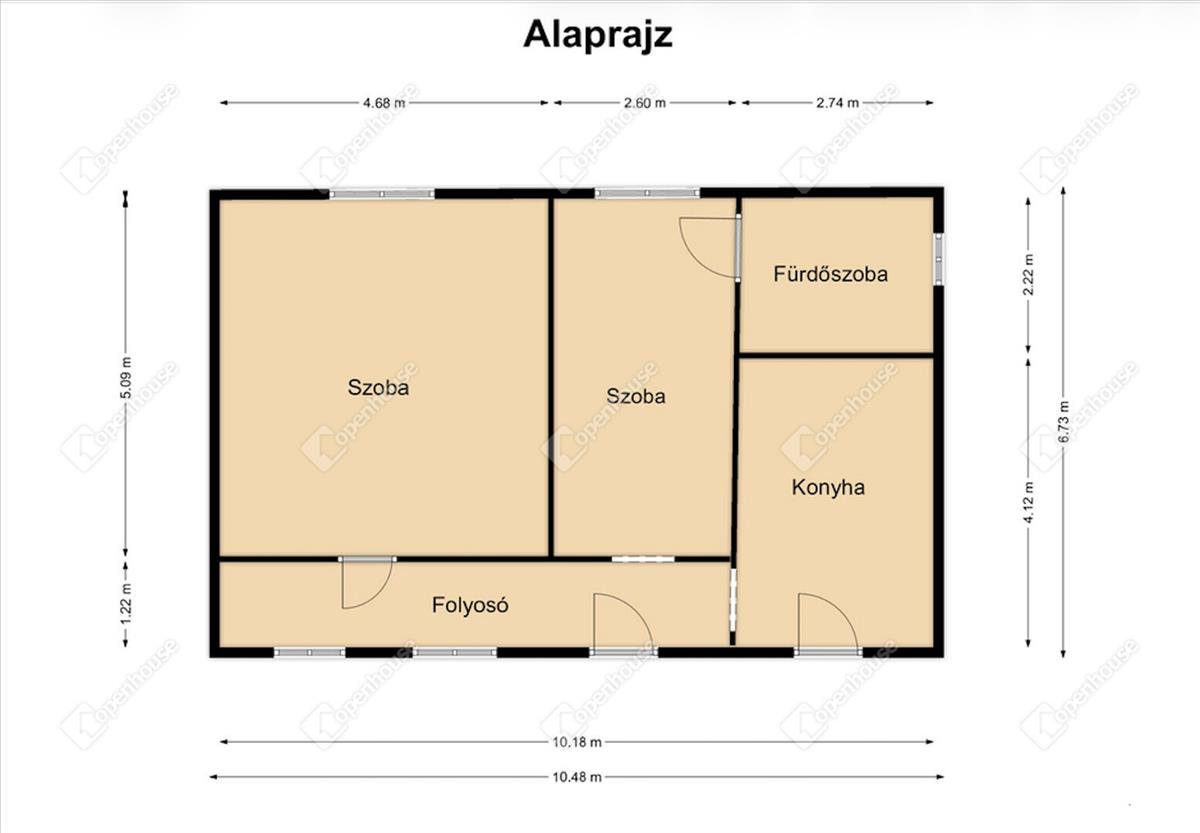 A 60 m² alapterületű ingatlan praktikus elrendezésű, két külön nyíló szobával rendelkezik, a konyha, a fürdőszoba és a folyosó is átgondolt kialakítást kapott. a ház világos, jó fényviszonyokkal rendelkezik tájolásának köszönhetően egész nap kellemesen napos. Az udvaron a fedett terasz kiváló helyszíne lehet a pihenésnek, baráti összejöveteleknek. Ideális választás lehet saját célra, de befektetésnek is kiváló. Óvoda, bölcsőde és iskolák a közelben találhatók, a belváros kb. 10 Perc sétára elérhető.