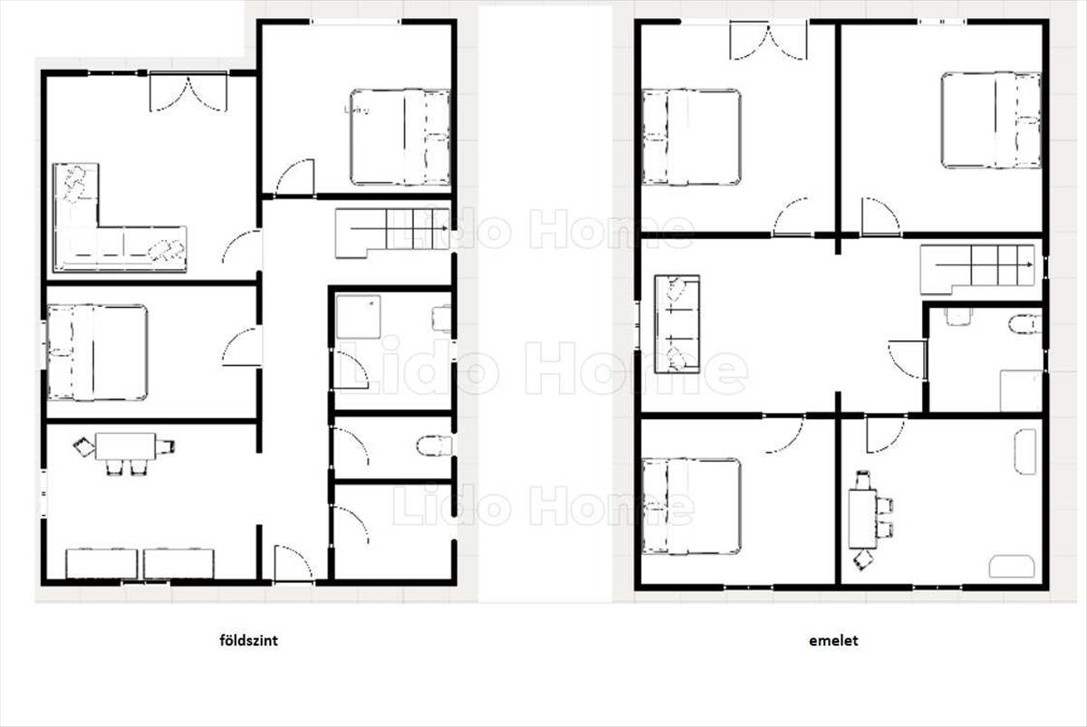 Alagsorban garázs, kazánház, magasföldszinten és emeleten is 2 önállóan is használható lakás. Belső lépcsőn átjárható.