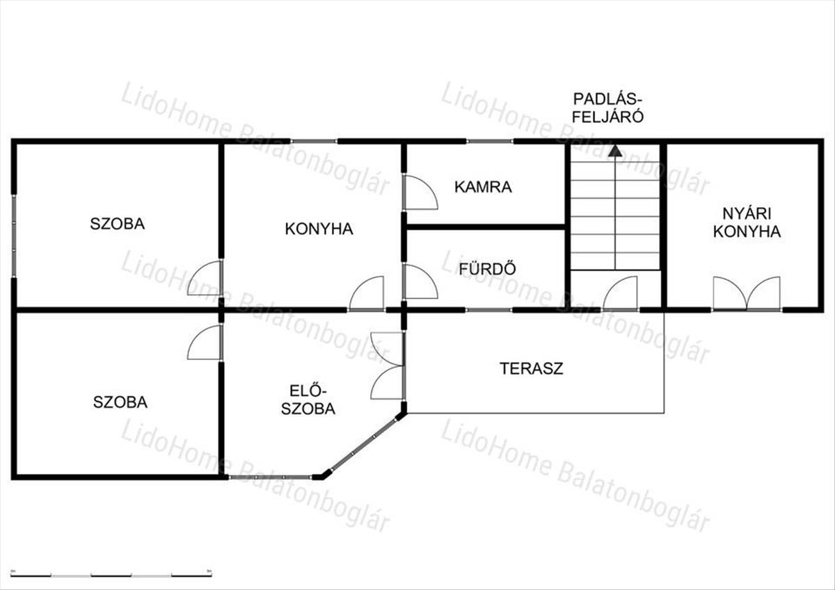 - Elosztás: 2 szoba + nappali (előtér), fürdő, Wc, Konyha, kamra és nyári konyha.
