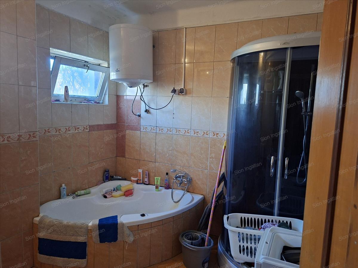 Alsó szinten nappali, konyha+étkező, fürdőszoba (kád, zuhanyzó)/wc található.