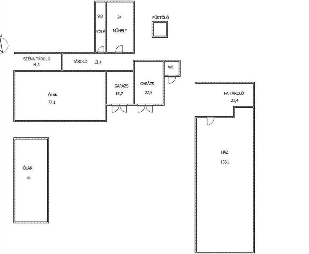 Az ingatlan adottságai mellett nagyon fontos megemlíteni, hogy állattartásra kifejezetten kialakított az udvar. Rengeteg kisebb ól (44 m2) szárnyasoknak, nagyobb ólak (77 m2) disznó, marha, akár lovak tartására is. Szénatároló (14 m2), góré (10 m2), műhely (24 m2), 2 zárt garázs is, az egyik 15, 6 m2, a másik pedig 22, 5 m2. Disznó vágáshoz eszközök, még füstölő helyiség is van. Tökéletes hely elvonulni a nyüzsgéstől, aki szeretne egy önellátó életet elkezdeni, vagy csak szeretne állatokat tartani.