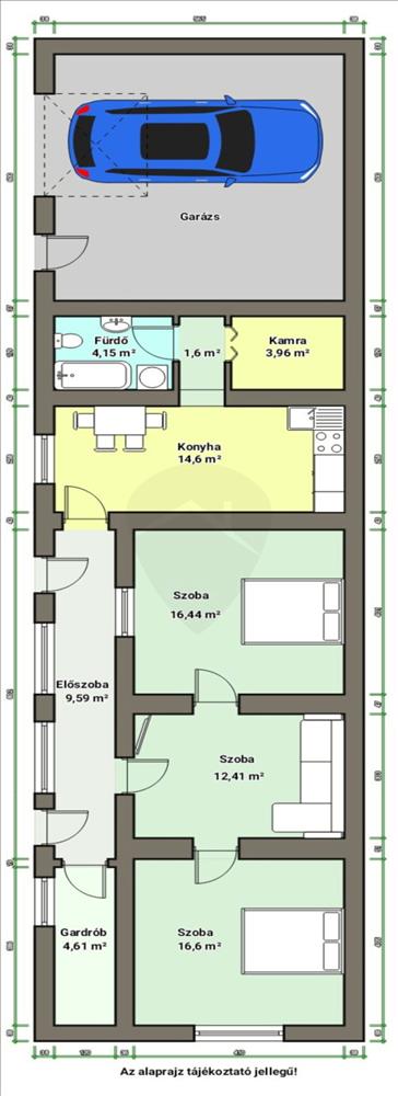 A telek mérete ideális, hiszen a 700 m2 kényelmesen átalakítható, karbantartható a hétvégéken. a ház mellett egy tágas kb. 25 m2-es Garázs + tároló található, amely alatt pince is elérhető.