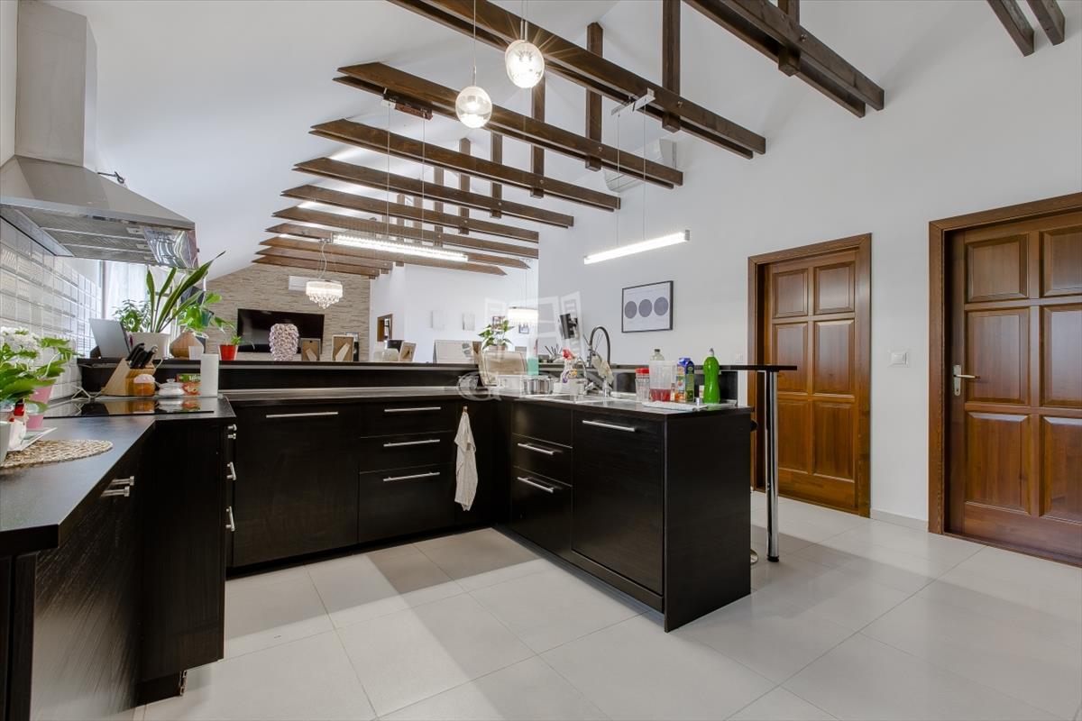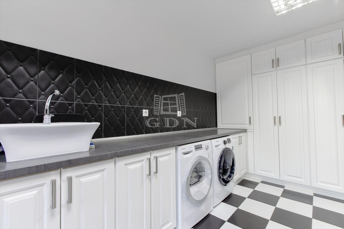 Belsőterek rendkívül ötletesen és ízlésesen vannak berendezve, gépesített ikea konyhabútor, számos beépített gardrób, illetve cipősszekrény, gépesített mosókonyha áll rendelkezésünkre. Kikapcsolódásért nappaliban házimozi rendszer, az udvaron pedig fedett kerti konyha (épített grill, kemence, bográcsozó) és wellness (szauna, hatalmas jakuzzi) részleg áll rendelkezésünkre.