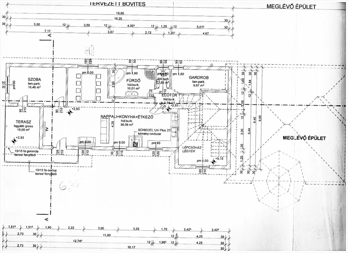 Az első épület az 1980-as években épült téglából ( klasszikus kádár kocka), melyet 2015-ben mélységében felújítottak ( komplett tetőcsere, nyílászárócsere, homlokzati dryvit és tetőszigetelés, teljesen új gépészet, és új hideg-meleg burkolóanyagok). Továbbá az épülethez szintén 2015-ben hozzáépítésre került egy kétszintes ytong szerkezetű épület, mely további 300 nm hasznos lakrészt biztosít.