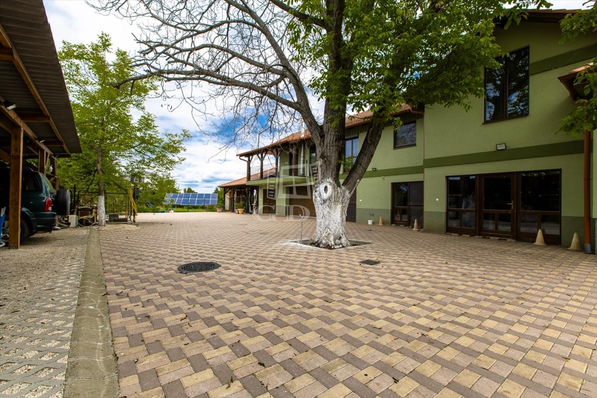 Az ingatlan megközelítése elektromos kapun történik, biztonságért riasztó illetve kamera rendszer felel.