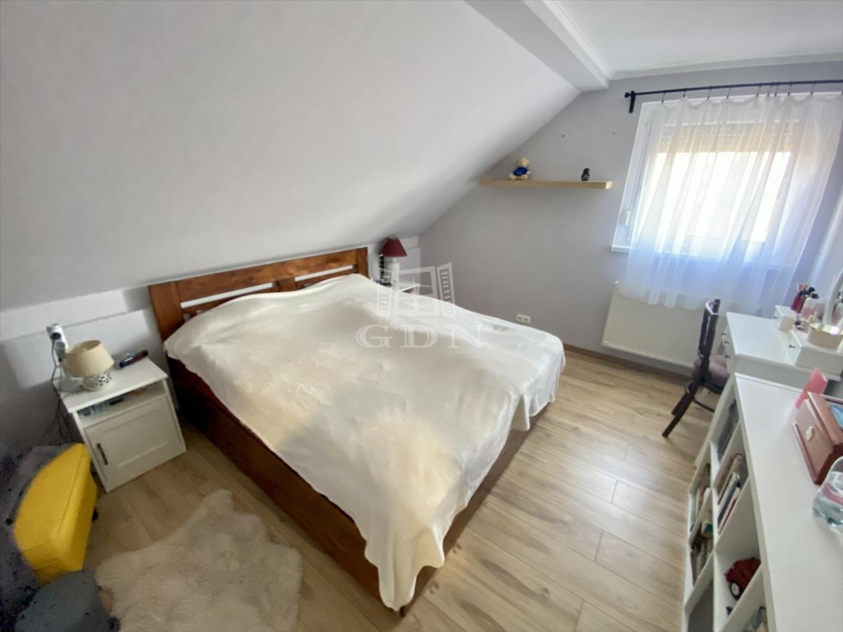 2002-ben épült, 136 nm -es, tetőtér beépítéses, amerikai konyhás nappali + 3 hálószobás, két fürdőszobás, cirkó fűtéses, klímás, műanyag thermo ablakos, külsőleg szigetelt, jó állapotú.