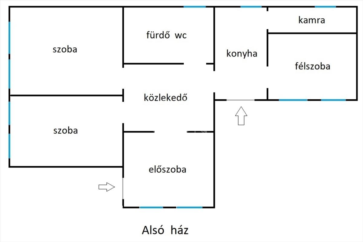 '60-as években épült, 99 nm -es, 2+1 félszobás, cirkó fűtéses, műanyag thermo ablakos, közepes állapotú.