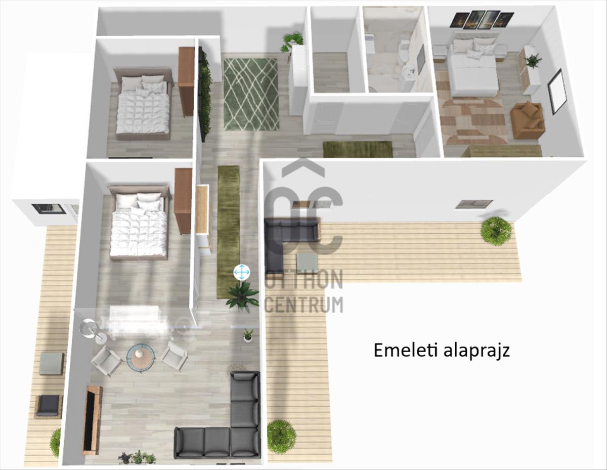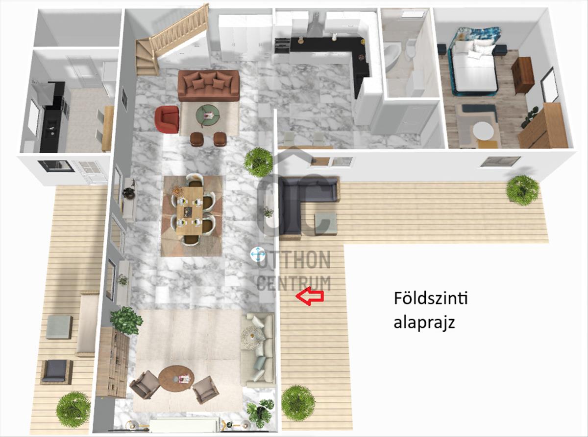A 50 négyzetméteres terasz ideális helyszín a pihenésre és a szabadban eltöltött időre, ahol élvezheti a természet közelségét és a környék csendességét. Az ingatlan panorámás kilátással rendelkezik, amely minden reggel új élményt nyújt, és lehetőséget ad arra, hogy a naplementét is gyönyörködve nézze.